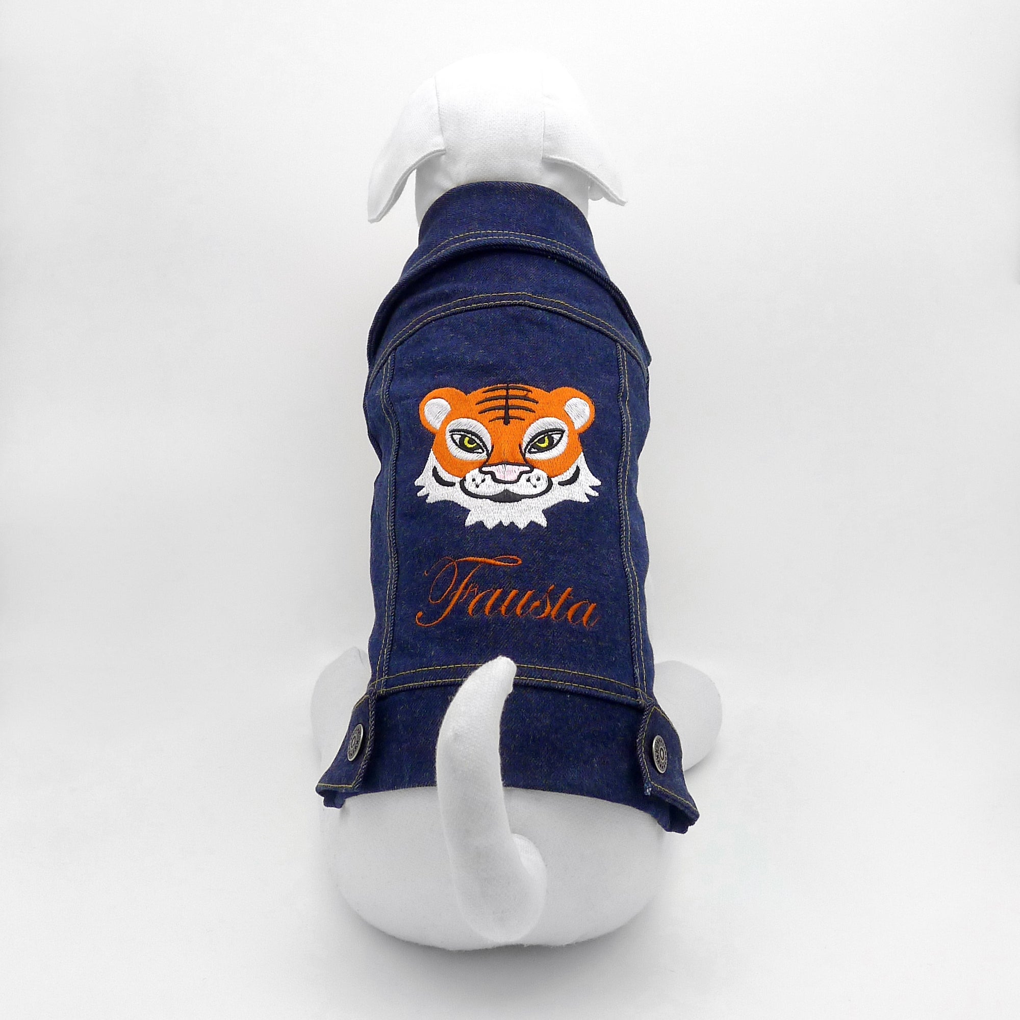 En savoir +Veste pour chien sur mesure en denim de coton classique et sportif dans la couleur bleue indigo traditionnelle