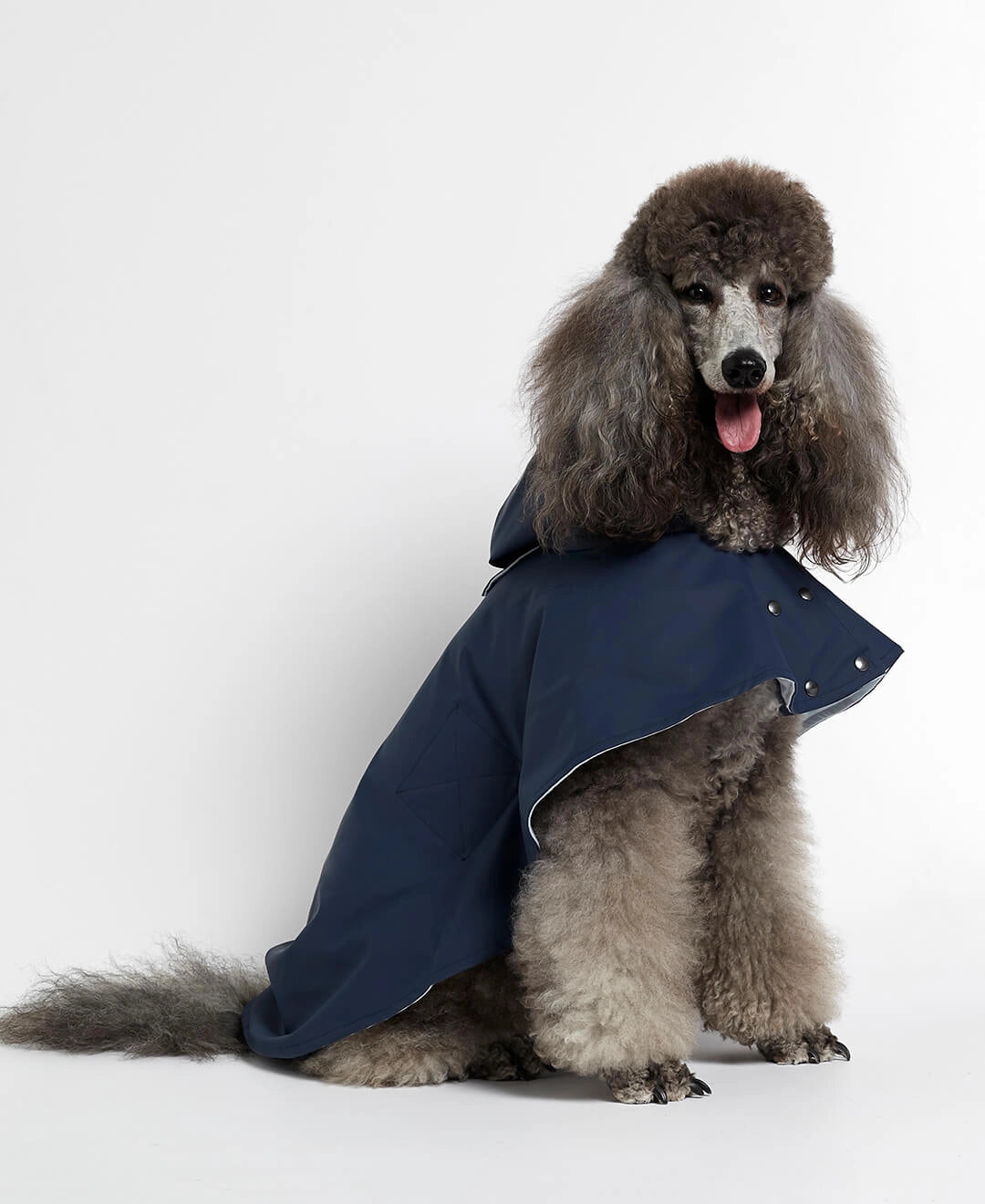 Cape de pluie pour chien confectionnée en tissu technique déperlant recyclé et doublé de coton biologique doux