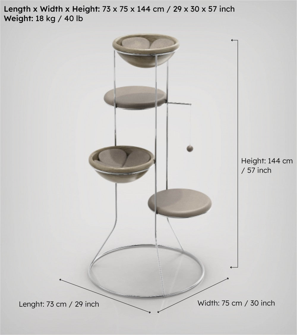 L'arbre à chat Constellation en bois massif de frêne est fabriqué à la main en France, avec une structure en acier chromé d'Italie et des plateaux en liège verni provenant des forêts de la Dehesa au Portugal. Composé de matériaux 100% européens et recyclables, il est certifié PEFC et FSC, garantissant une origine durable et respectueuse des forêts.