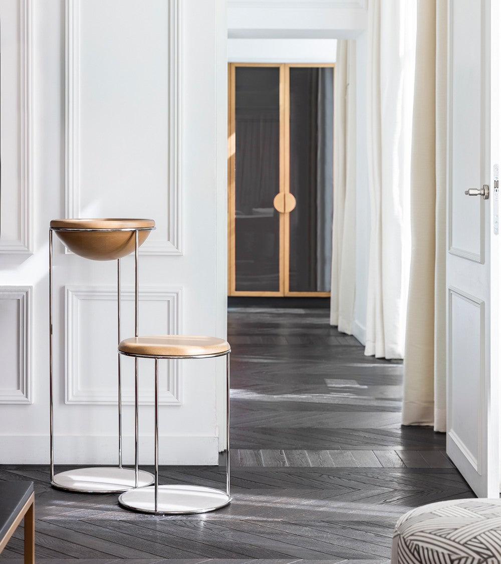 L’arbre à chat artisanal Cosmos est une fusion d'art et de design, avec une demi-sphère en bois massif de frêne, sculptée à la main en France, et une structure en acier chromé, conçue en Italie. Le plateau en liège verni, provenant des forêts protégées de la Dehesa au Portugal, complète cette pièce d'exception.