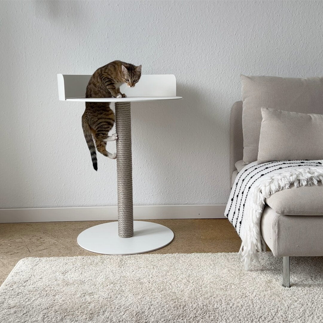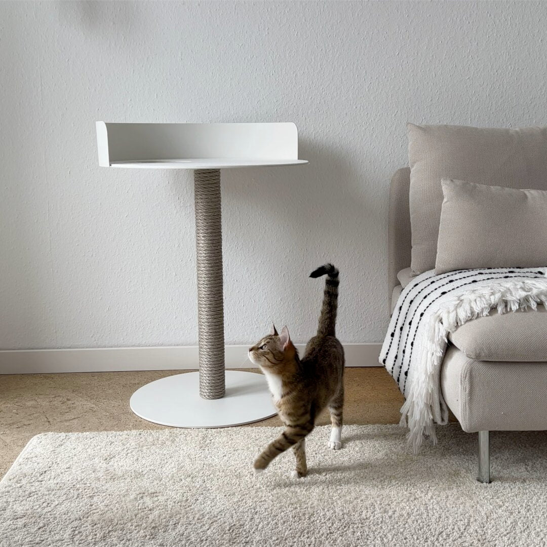 Un griffoir ergonomique en sisal résistant, offrant une surface de couchage spacieuse recouverte d'un feutre de haute qualité. Sa hauteur optimale permet une observation parfaite, même dans les espaces les plus restreints. Les possibilités sont infinies : grimper, gratter, jouer, dormir et observer.